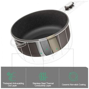 Limpeza simples e cozimento saudável: o revestimento antiaderente não só evita que os alimentos grudem, facilitando a limpeza, como também permite cozinhar com menos óleo, promovendo uma alimentação mais saudável. Segurança e sustentabilidade são garantidas, pois o material é livre de toxinas mesmo em altas temperaturas e ecologicamente correto.