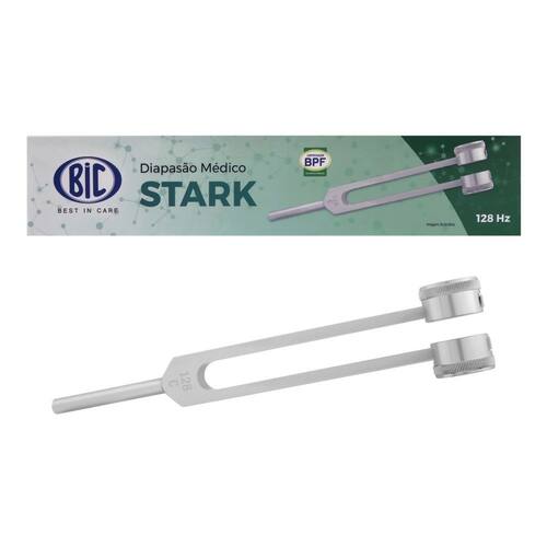 O Diapasão médico STARK BIC 128 CPS com fixador é um instrumento utilizado por profissionais da saúde na avaliação e testes audiológicos na verificação de perda auditiva. O diapasão serve como fonte condutora para a transmissão dos sons por via aérea e via óssea e pode ajudar a direcionar o diagnostico nos casos de lesão do sistema auditivo, tanto relativo ao local quanto à causa da lesão.