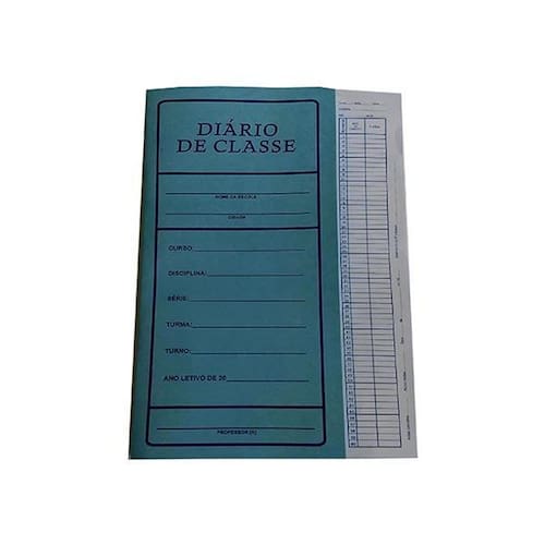 Produzido com capa em cartão azul 180g/m e 14 folhas internas em off-set 63g/m nas medidas 20,7x32,3 cm, de acordo com as exigêncas do MEC, acondicionado em 2 pacotes com 50 unidades cada.
