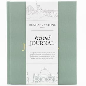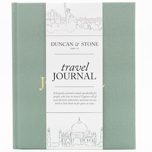 DUNCAN & STONE PAPER CO. Diário de viagem para mulheres, homens (verde sálvia, 110 páginas) – Diário de aventura para registrar memórias de viagem – Diário de viagem – Diário de viagem – Diário de - Livro de memória de viagem: um diário de registro de viagem de lembrança, especialmente criado para pessoas que amam viajar! Capture todas as suas aventuras favoritas e momentos especiais em um livro para relembrar por muitos anos. Personalize este organizador de memórias escrevendo sua lista de desejos e memórias especiais de até 15 viagens. - Perfeito para capturar momentos: capture suas memórias e experiências com nosso caderno de diário de férias com instruções e álbum de fotos com uma coluna plana para facilitar o diário! Este diário de viagem para homens e mulheres inclui espaço para anexar fotos e anotações, e um bolso traseiro para fotos extras, tornando-os uma ótima lembrança para qualquer viajante. - Materiais de alta qualidade: este álbum de recortes de viagem simples e fácil de usar é feito com uma capa dura de pano de linho de qualidade com um título e lombada em relevo dourado. Nosso caderno de viagem mede 23,5 x 19,7 cm e contém 110 páginas. Este álbum de recortes de aventura é embrulhado em uma bolsa de celofane para proteção. - Seção incluída? Nosso diário de viagem é o presente de viagem perfeito, inclui um índice com espaço para 15 viagens, perguntas de visão geral da viagem, páginas de "coisas favoritas", uma lista de desejos para futuras ideias de viagens e páginas em branco designadas para anotações e fotos. Ele também vem com um bolso traseiro para armazenar fotos e anotações extras! - Duncan & Stone Paper Co. Valor: Duncan & Stone Paper Co. é uma empresa de papelaria que combina design atemporal com diário sem esforço. Nossa missão é conectar gerações preservando as experiências de vida de cada pessoa por meio de instruções simples e guiadas. Acreditamos em capturar os momentos que mais importam através da beleza da narrativa manuscrita.