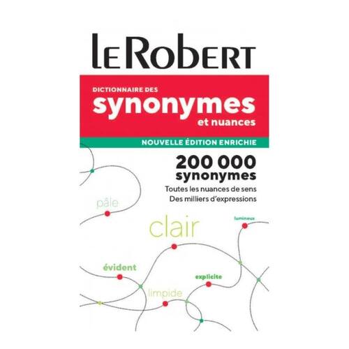 Le plus complet des dictionnaires de synonymes dans un format poche et pratique. Ce dictionnaire de 200 000 mots est LA référence pour s’exprimer avec précision et éviter les répétitions.Une nouvelle édition enrichie plusieurs centaines de nouveaux synonymes. 200 000 synonymes classés par sens : Une personne discrète est réservée, pudique, silencieuse, mais un lieu discret est retiré, isolé, à l’abri des regards… Les nuances entre les mots de sens proches expliquées : On enseigne l’anglais mais on inculque des valeurs… Des milliers d’expressions pour un langage plus imagé : S’enfuir, c’est aussi prendre la tangente, mettre les voiles… Tous les registres de langue, emplois et usages : On peut être stupéfait, interdit (littéraire) ou scié (familier)…? Plus de 1 000 mots et expressions des régions de France et de la francophonie. ? ?Un guide efficace et pratique pour les élèves, les professionnels de la communication ou de l’écriture et toute personne qui cherche à s’exprimer avec précision et justesse. Marca: LE ROBERT FRANCE