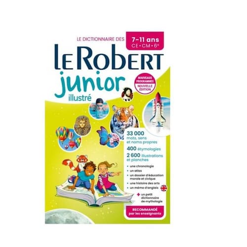 N°1 des dictionnaires pour l’école, Le Robert junior permet aux enfants de 7 à 11 ans, du CE à la 6e, de progresser dans la maîtrise de la langue, d’enrichir leur vocabulaire et de comprendre le monde qui les entoure. Une nouvelle édition plus riche, plus pédagogique et plus illustrée, recommandée par les enseignants. La référence à l’école pour maîtriser la langue française et enrichir son vocabulaire : 33 000 mots et sens des exemples clairs, pensés pour les enfants d’aujourd’hui les synonymes et les contraires, les homonymes, les familles de mots + l’étymologie avec l’origine de 400 mots + un mémo tout en un en langue française : grammaire, conjugaisons, orthographe Un outil clé pour acquérir des repères culturels et s’ouvrir au monde : 1 500 noms propres 2 500 illustrations et photographies 124 belles planches encyclopédiques : faune, flore, sciences et techniques… une chronologie visuelle avec les repères historiques un atlas mondial illustré un dossier d’éducation morale et civique une histoire des arts un mémo d’anglais + un petit dictionnaire de la mythologie Marca: LE ROBERT FRANCE