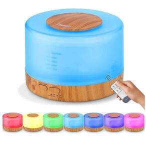 Difusor de aromaterapia de 500ml, umidificador de ar com luz noturna de Led para casa, quarto, ultrassônico, nebulizador frio, difusor de aroma óleo essencial Lindo aromatizador, umidificador de ar e luminária noturna no mesmo aparelho. Possui capacidade para 500ml de água e é composto de plástico ABS. Ele é elétrico, funciona ligado na tomada 110v ou 220v (Bivolt). Não necessita de filtro de reposição. Possui temporizador de 1, 2 ou 3 horas com desligamento automático. A luz pode ser desligada, deixando apenas o aromatizador. Pode fixar a cor da luz ou deixar trocando automaticamente. Possui controle remoto para maior conforto e praticidade.