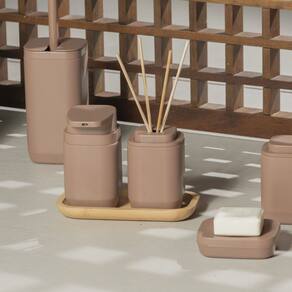 Fabricado em poliestireno e bambu, oferece durabilidade, elegância e um toque natural, tornando-se um item decorativo além de funcional.