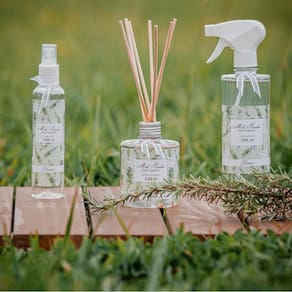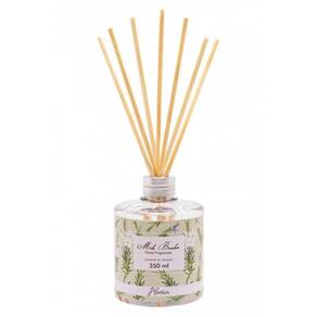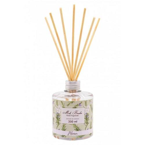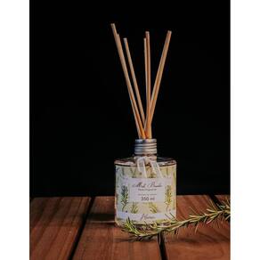 Ref.: 002254 Difusor De Aromas 350 Ml - Alecrim - Mels Brushes Aromatiza de forma contínua, as varetas de madeira são ótimos veículos para a propagação do aroma. Além disso, decora o ambiente com sofisticação e elegância. Indicados para aromatização e decoração de salas, lavabos, etc. Os Difusores de aromas incluem as varetas de madeira para evaporar a fragrância, basta remover o selo da tampa do frasco e inserir as varetas. Para aumentar a intensidade vire as varetas uma vez ao dia para uma maior liberação do aroma. A fórmula evapora ao longo do tempo e, depende da temperatura ambiente, os difusores permanecem perfumados por cerca de 90 dias. As varetas podem ser invertidas constantemente para maior aromatização. Aroma herbáceo refrescante, boscoso, aguçado e tons de cânfora. Originada no Mediterrâneo. Material: PET e madeira Família Olfativa: Floral.