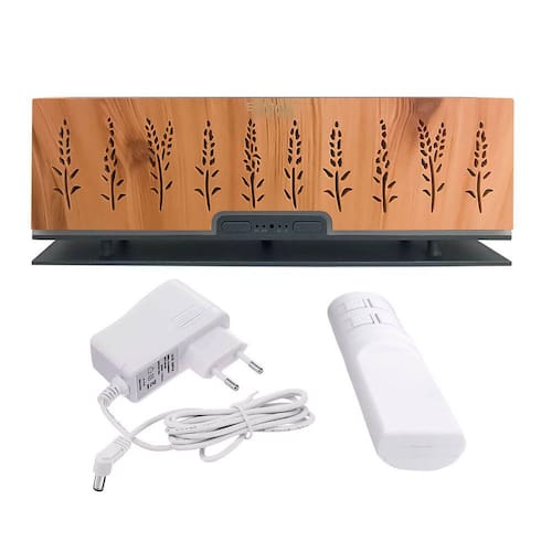 Opção de liga/desliga luz Opções de tempo automático 30s 2H 4H Acompanha controle remoto Material: ABS+PP Capacidade : 200ml Tensão de saída: DC 24V 0.5A Poder: 8W Frequência Ultrassônica: 2.4Hz Alimentação: Fonte Bivolt Tamanho do produto: 25x7x9cmItens Inclusos: