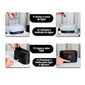 Difusor de aromas com luz mágica e névoa O difusor de aromas, umidificador e luminária, é um mini eletrodoméstico necessário e mais que útil para ser ter no dia a dia. Ele promove bem estar e tem benefícios incríveis que podem agregar na sua qualidade de vida. É produto portátil, pequeno e que não ocupa muito espaço. Tem um formato elegante e sofisticado, seu vapor imita uma chama que é visualmente bonito e decorativo. Possui duas opções de cores que podem ser usadas como você preferir. Com a função de temporizador você define o tempo de trabalho, seu modo de alimentação é por meio de usb uma conexão universal e com muitas possibilidades de carregamento, seja por um adaptador de celular, notebook ou powerbank. Características: - luminária de led: duas cores para serem usadas. - melhora a qualidade do ar; - reduz o , ansiedade e nervosismo; - pequeno, portátil e que não ocupa espaço. Funções que vão melhorar o seu dia a dia e a sua qualidade de vida Difusor: difusor de óleos essenciais, que ajudam na melhora de diversos quadros, como ansiedade, insônia e outros. Liberando vapor e a essência. Aromatizador: você pode usar se preferir aromatizadores a base de água, com o intuito somente de perfumar o ambiente ou fazer tratamentos de aromaterapia que podem promover melhoras na sua qualidade de vida. Umidificador: a função de umidificador tem como objetivo melhorar a sua qualidade de ar, é ideal e recomendado para ambientes muitos secos ou lugares fechados. Ele libera um vapor frio que umidifica o ar tornando o confortável de respirar. Luminária: possui duas cores de luzes, laranja e azul que podem ser usadas como luminária ou decoração de ambientes, agregando valor ao mesmo. Aplicações: sala de estar, como meio decorativo, umidificador, aromatizador. Ótimo item para ter no quarto como luminária. Perfeito para dar de presente a amigos e familiares. Atenção: a capacidade máxima do reservatório de água é de 230ml. Há uma linha que indica essa capacidade, não coloque mais água do que o necessário. Ao fazer isso, você pode comprometer a funcionalidade do produto. E promover vazamentos que podem danificar a seu móvel. Uso dos botões: Botão power: um clique: ligar o produto. Clique novamente: saída de vapor. Clique e segure: muda de cor. Dois cliques seguidos: função de temporizador. Especificações: Potência: 4.5w Entrada: dc5.0v/2.0a Tamanho: 172x82x116mm Capacidade: 230ml Volume de spray: 20-30ml/hr Material: abs/pp/pcba Lista de embalagem: 1x aromatizador 1x cabo usb tipo c 1x manual de instrução Marca: Não Informado Ean: 7895277450510