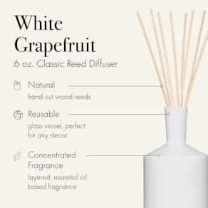 - Coleção de casa e casa – Nossa coleção House & Home transporta você para um cômodo, ambiente ou destino através da combinação de aroma, cor e design. O difusor White Grapefruit evoca o clima de estar em uma cabana.