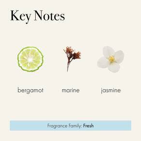 - Aroma – Marinho evoca brisas salgadas carregando jasmim do mar, rosa e ciclâmen, misturados com um toque de bergamota. Ruibarbo fresco, com vetiver e musgo marinho, cria o clima texturizado de uma costa arenosa.