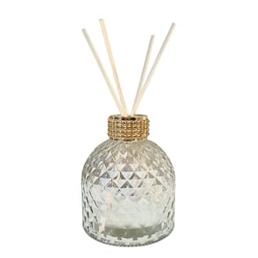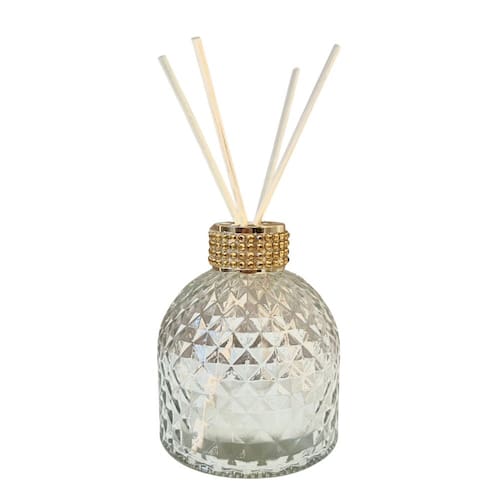 Decoração sala quarto difusor de vidro dourado/ transparente trabalhado com varetas e detalhe pedrarias.