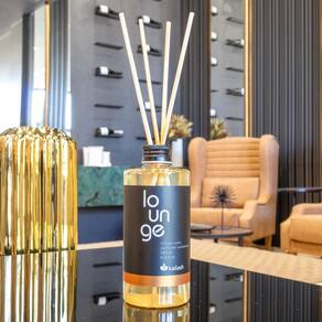 A fragrância Lounge simboliza a alegria, a paz, a tranquilidade, o luxo e a sofisticação. Ideal para ambientes sociais, reuniões de pessoas e confraternizações. As notas de saída são compostas por pômelo, bergamota Itália e anis. Notas de corpo construídas por lavanda, notas aquáticas e sândalo. Notas de fundo compostas por almíscar, heliotrope e âmbar.