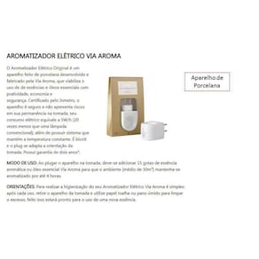 Kit 1 Aromatizador Difusor Elétrico Porcelana Via Aroma + 6 Essências 10ml Via Aroma Contém 7 itens: 1 Aromatizador Difusor Élétrico de Porcelana Via Aroma; 1 Frasco de Essência com 10ml Bamboo; 1 Frasco de Essência com 10ml Alecrim Silvestre; 1 Frasco de Essência com 10ml Lavanda Francesa; 1 Frasco de Essência com 10ml Flor de Cerejeira; 1 Frasco de Essência com 10ml Breeze; 1 Frasco de Essência com 10ml Vanilla. As essências via aroma mais apreciadas agora estão disponíveis em frascos com 10ml. Para uso no aromatizador elétrico utilize 15 gotas para aproximadamente 4 horas de aromatização, em um ambiente de 30m². Características: Frasco com dosador Consistência: oleosa Volume: 10ml O aromatizador elétrico via aroma é uma forma prática de deixar sua casa, loja ou escritório com o aroma que você mais gosta. Permite que seu ambiente seja aromatizado de forma continua, prática e segura.