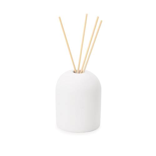 Fabricado em cimento de alta qualidade com acabamento fosco na cor branca, o difusor apresenta uma silhueta arredondada que se integra perfeitamente a estilos como o escandinavo, industrial ou zen. Suas dimensões de 10 cm de altura e 8 cm de diâmetro o tornam um acessório discreto, porém com presença marcante em mesas de apoio ou bancadas.