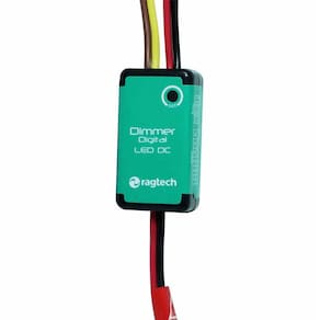 Dimmer Digital Ragtech Dld8, Para Fita E Lâmpadas Led Dc, 100W-12V / 150W-24V - 20Dim4444 Marca: ragtechModelo: dimmer digital led dc - dld8P/n: 20dim4444 Controla a luminosidade de fitas led dc e lâmpadas led dc de 0 a 100% da intensidade luminosa, trazendo maior conforto e economia de energia elétrica. Operando em tensões de 12vdc e 24vdc, integra-se a instalação elétrica e permite o acionamento através de um ou mais pulsadores ligados em paralelo. Utiliza fontes convencionais e não é necessária a utilização de fontes dimerizáveis. Pode ser utilizado com os seguintes tipos de fitas e lâmpadas: Fita led dc Lâmpadas led dc Lâmpadas dicroica led Lâmpadas dicroica halógenas Especificações: Potência máxima: 100w-12vdc / 150w-24vdc Corrente máx.: 8a Tensão de operação: 12vdc a 24vdc Temperatura de alimentação: 0ºc - 50ºc Conector p4 para fonte de alimentação: não Comprimento mínimo dos fios: aprox.130mmImportante: o dimmer é bivolt, porém a lâmpada ou fita utilizada deve seguir a tensão da fonte de alimentação
