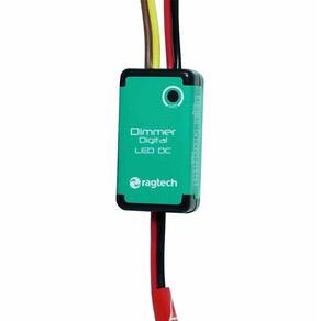 Dimmer Digital Ragtech Dld8, Para Fita E Lâmpadas Led Dc, 100W-12V / 150W-24V - 20Dim4444 Marca: ragtechModelo: dimmer digital led dc - dld8P/n: 20dim4444 Controla a luminosidade de fitas led dc e lâmpadas led dc de 0 a 100% da intensidade luminosa, trazendo maior conforto e economia de energia elétrica. Operando em tensões de 12vdc e 24vdc, integra-se a instalação elétrica e permite o acionamento através de um ou mais pulsadores ligados em paralelo. Utiliza fontes convencionais e não é necessária a utilização de fontes dimerizáveis. Pode ser utilizado com os seguintes tipos de fitas e lâmpadas: Fita led dc Lâmpadas led dc Lâmpadas dicroica led Lâmpadas dicroica halógenas Especificações: Potência máxima: 100w-12vdc / 150w-24vdc Corrente máx.: 8a Tensão de operação: 12vdc a 24vdc Temperatura de alimentação: 0ºc - 50ºc Conector p4 para fonte de alimentação: não Comprimento mínimo dos fios: aprox.130mmImportante: o dimmer é bivolt, porém a lâmpada ou fita utilizada deve seguir a tensão da fonte de alimentação