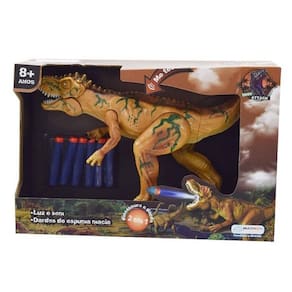 Dino attack 2 x 1 dinossauro e lançador de dardos com luz e som brinque com um dinossauro com luzes nos olhos e sons de verdade ou transforme ele em um lançador de dardos de espuma bem legal. dinossauro com articulações nos braços e pernas. acompanha 01 dinossauro e 06 dardos de espuma. utiliza 03 baterias ag13 (inclusas). composição do produto: plástico pvc e espuma (dardos). data de fabricação: 2018. fabricante: multikids.recomendado a partir 08 anos imagens meramente ilustrativas. inmetro: cebri/sgs i051702 nm 300/2002 ocp 0040