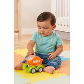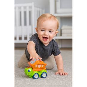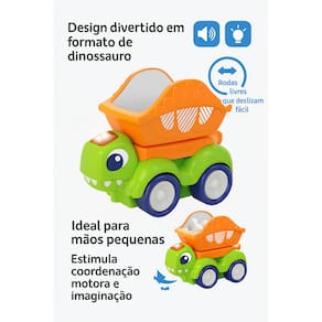 Destaques e Benefícios: • Movimento rápido com caçamba balançante para máxima diversão • Sons variados, incluindo efeitos de dinossauro, que despertam a curiosidade infantil • Luzes piscantes que estimulam a percepção visual • Botão simples e fácil de acionar, ideal para as mãozinhas pequenas • Produto resistente, seguro e com design criativo • Estimula a coordenação motora, audição e imaginação