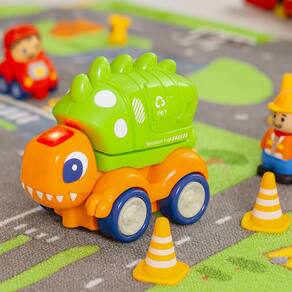 Destaques e Benefícios: • Movimento rápido com container ecológico balançante • Sons divertidos, incluindo efeitos de dinossauro • Luzes piscantes para estimular a atenção • Acionamento simples por botão – ideal para os pequenos • Design lúdico com tema de reciclagem e preservação • Estimula o aprendizado, a imaginação e a coordenação