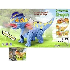 Embarque nesta aventura com o Dinossauro que anda, solta fumaça pela boca. Acende as luzes e emite som real de dinossauro.