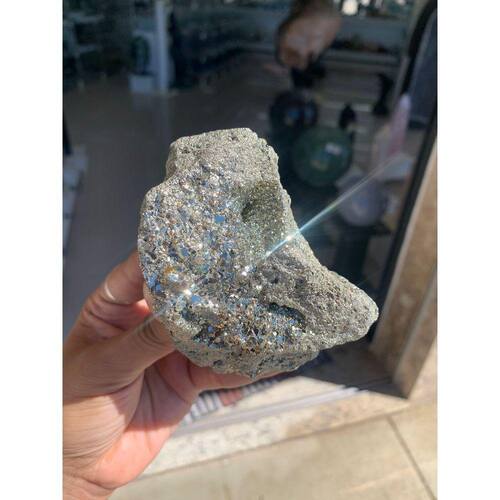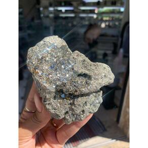 Pirita Peruana com Formato de Dinossauro, pedra Extra ,mineral cúbico ou seja formação em cubo sobre outros em algomerados, ideal para coleção e esoterismo Pedra com bom brilho, cubos pequenos e brilhosos Conhecida também como "Ouro de Tolo"