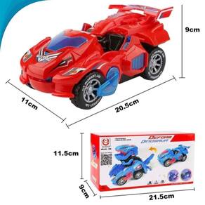Características Transformação automática de carro para dinossauro Sons estrondosos ao se transformar Luzes led coloridas e música divertida Rodas universais que mudam de direção ao encontrar obstáculos Sistema anti-colisão Seguro e durável Brinquedo portátil e interativo, ideal para crianças