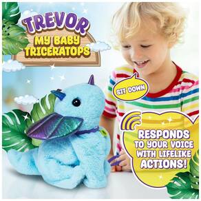 Domine 6 TRUQUES ATIVADOS POR VOZ e comande o Trevor para sentar, pedir, brincar ferido, andar, ficar de pé e dançar! Ele RESPONDE À SUA VOZ com ações realistas e sons de dinossauro adoráveis, tornando a brincadeira pré-histórica muito divertida! Leve-o para um PASSEIO DE DINOSSAURO e embarque em aventuras pré-históricas! Puxe sua coleira ou diga 'Vamos lá' para vê-lo caminhar ao seu lado. FESTA DE DANÇA DE DINOSSAURO: Assista o Trevor dançar com seus movimentos característicos. Companheiro ACONCHEGANTE: Suave, peludo e muito abraçável, o Trevor é o companheiro perfeito para amantes de dinossauros de todas as idades - sem bagunça, apenas diversão pura! Feito com materiais seguros e não tóxicos. PRESENTE DINOSSAURO DEFINITIVO: Procurando um presente incrível? O Trevor vem em uma caixa colorida e brilhante, fácil de embrulhar, sendo o presente perfeito para aniversários, feriados, Natal ou qualquer ocasião. Ideal para entusiastas de dinossauros a partir de 3 anos, basta inserir 4 pilhas AA (não incluídas) e a diversão começará!