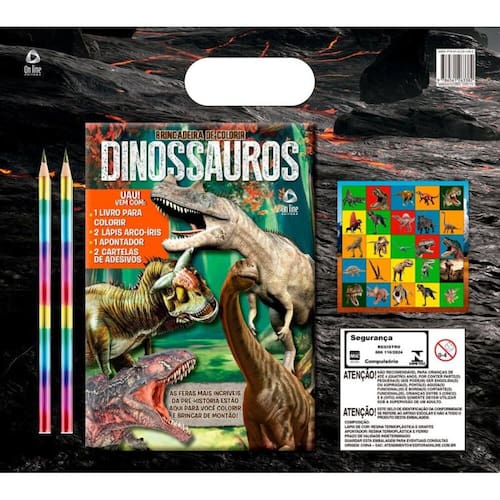 Olá, pequenos exploradores! Estão prontos para uma super aventura com "Dinossauros Brincadeira de Colorir"? Neste kit, vocês vão encontrar páginas cheias de dinossauros legais esperando por cores brilhantes! Com 2 lápis de cor arco-íris, um apontador e não se esqueçam da cartela de adesivos super divertidos para enfeitar suas artes! Vamos colorir e explorar o mundo dos dinossauros!