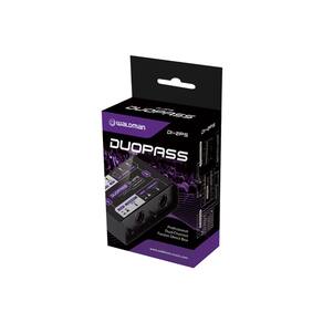 Direct Box Passivo Waldman DuoPass DI-2PS Profissional O Duopass é um direct box passivo com duas entradas, projetado para balancear o sinal e ajustar a impedância, permitindo a conexão direta de instrumentos a mixers (analógicos ou digitais) e amplificadores. Cada canal conta com atenuação de entrada ajustável (0 dB / -20 dB / -40 dB) e a função "Ground Lift", que elimina ruídos e problemas de aterramento. Com construção robusta em metal e componentes de alta qualidade, o Duopass garante durabilidade e desempenho superior. Especificações:- Conexão para 1 ou 2 instrumentos ou 1 instrumento estéreo- Atenuação de entrada: Selecionável (0dB, -20dB, -40dB)- Entrada de instrumento: Jack TRS 1/4” de 50K desbalanceado- Saída paralela (link): Jack TRS 1/4” de 50K desbalanceado- Saída balanceada: XLR 600 Ohms balanceado- Ground Lift (Aterramento): Selecionável- Construção: Chassi robusto em metal