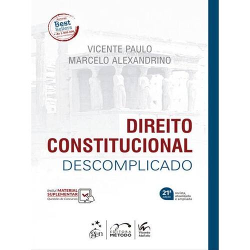 Os Professores Marcelo Alexandrino e Vicente Paulo têm, como relevante diferencial, singular capacidade de transportar para a escrita a mesma didática que os caracteriza nas salas de aulas, pela qual conseguem tratar de temas altamente complexos de forma objetiva e cristalina, em linguagem descomplicada, amplamente acessível. A maestria na comunicação, a clareza na abordagem dos assuntos, a empatia com seu público e a preparação podem explicar parte do sucesso de aceitação de suas obras. Direito Constitucional Descomplicado é reflexo das características apontadas acima. O livro aborda todos os temas relevantes da disciplina, contemplando o conteúdo de editais dos principais concursos públicos, como também os programas das universidades do País, tudo com o rigor científico que exige a matéria. Complementarmente, apresenta uma extensa seleção de exercícios extraídos de provas de importantes bancas examinadoras, organizados por assunto, o que permite uma eficaz fixação do conteúdo estudado. Nesta 21.ª edição do Direito Constitucional Descomplicado, temos, entre outros, os seguintes atos normativos contemplados: EC 115/2022; EC 113/2021; EC 114/2021; EC 111/2021; EC 109/2021. SALA DE AULA VIRTUAL INTEGRADA: Nesta edição, a sala de aula virtual vem integrando o material suplementar com questões interativas das obras Direito Administrativo Descomplicado e Direito Constitucional Descomplicado, proporcionando a conexão entre as duas principais disciplinas do direito, tanto para universitários quanto para concurseiros. Marca: METODO EDITORA *
