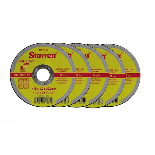 Compre agora o Disco Abrasivo de Corte 115mm DAC11514 com 05 pçs Starrett e tenha em mãos uma ferramenta de qualidade para realizar cortes precisos e rápidos em materiais de aço carbono e aço inox. Garanta já o seu! Ean: 7891265148520
