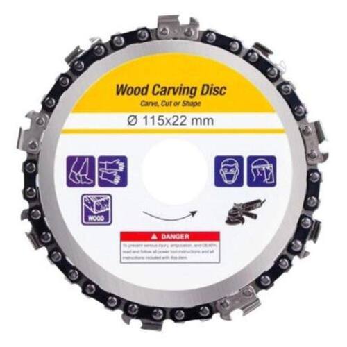 Disco Corrente Motoserra 100mm para Esmerilhadeira SA Tools Disco Corrente Motoserra 100mm para Esmerilhadeira SA Tools Disco Corrente Motoserra 100mm para Esmerilhadeira SA Tools; Corta galhos, tábuas, ripas, plástico, gesso, gelo, borracha dura, etc. Ferramenta balanceada, gira sem oscilações e corta de maneira suave, sem golpes. - Marca: S.A Tools- Acessório ideal para entalhes, desbaste, encaixes, cortar, esculpir, cavar, etc- Material: Aço- Diâmetro: 4 100mm - Encaixe: 5/8 16mm - A corrente da serra contém 22 dentes e é encaixada entre duas placas de aço que fornecem um aperto seguro para a estrutura. Excelente para cortar em curva ou círculo.- Velocidade máxima: 14.000 rpm- Aplicação: trabalhos em madeira- 22 dentes- Compatível com esmerilhadeiras de 4 100mm ou 4-1/2 115mm - Utiliza corrente 3/8 5.5mm- Espessura do corte: 5 mm Marca: Nakazaki