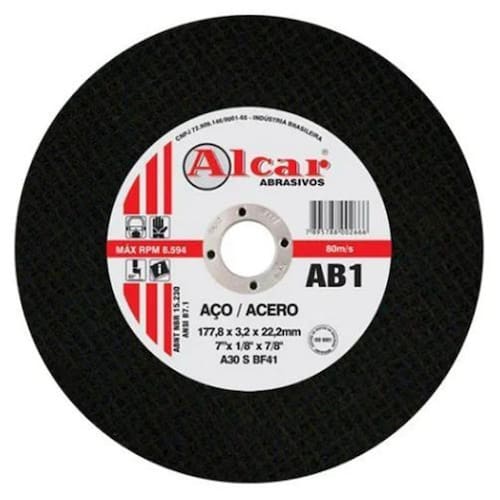 Disco Corte 304,8X3,2X19MM AB2 - Alcar - Corte de aço e de materiais ferrosos; Produto desenvolvido para o corte de perfis, barras e chapas; Ideal para utilização em serralherias; Possui duas telas de reforço. Características Gerais do Produto: Tamanho: 10 X 15 X 15 300g : 3 meses Marca: Não Informado Ean: 7895788000754