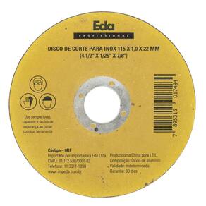 Disco Corte AÇO INOX 115X1,0X22MM EDA 0BF