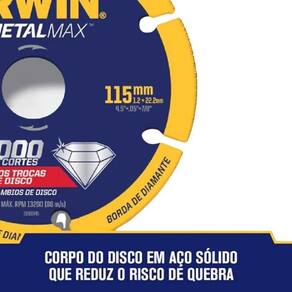 Disco de Corte Diamantado Metalmax 115 x 22.2mm Irwin - 1998845: Precisão e Durabilidade em Cortes Metálicos
