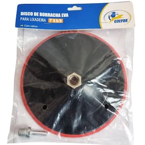 Disco de Borracha 180mm x 5/8 Suporte para Lixa 7 Pol. Base Aderente Guepar Suporte para lixadeiras, esmerilhadeira e politriz de 7 Polegadas 180mm . Com encaixe rosca 5/8 e base aderente. Acompanha adaptador para furadeira - Marca: Guepar - Referência: 861-40003 - Diâmetro: 180 mm - Rosca: 5/8 - Acompanha Adaptador para furadeira - Velocidade máxima: 12.500 rpm - Base aderente - Indicado para lixar madeira, superfícies pintadas, metal, etc. - Peso bruto: 180 gramas - : 90 dias Marca: Não Informado