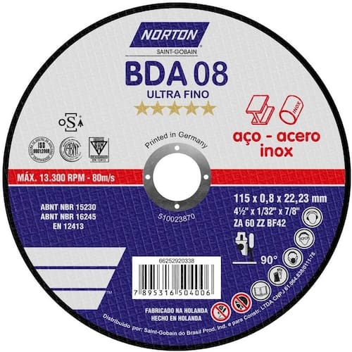 Disco de Corte com Depressão Central BDA 08 115x0,8x22,23mm - 66252920338 - NORTON