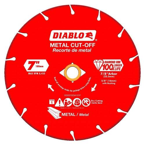 O disco de corte de metal diamantado Diablo 7" foi projetado para oferecer durabilidade e desempenho de corte incomparáveis em aplicações extremas de corte de metal. Projetado com uma borda de diamante galvanizada avançada, este disco oferece vida útil até 100 vezes maior do que as rodas coladas padrão, tornando-o ideal para cortar vergalhões, ferros angulares, barras de aço e ferro fundido. Ao contrário dos discos colados, ele mantém seu diâmetro de corte total durante todo o uso, oferecendo precisão consistente. A tecnologia diamantada também aumenta a segurança, reduzindo faíscas, poeira e o risco de quebra do disco. Compatível com trituradores que usam tamanhos de mandril de 5/8" ou 7/8", esta roda plana tipo 1 oferece cortes suaves e controlados e um valor excepcional para tarefas exigentes de usinagem.