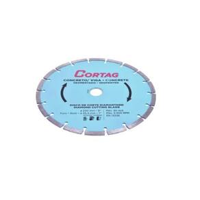 Excelente disco de corte diamantado com o perfil segmentado Cortag que é recomendado para a aplicação em concreto, bloco de concreto e alvenaria. Acompanha bucha de redução 25,4mm para 22,2mm. Dicas para aumentar o rendimento do disco de corte: - Refrigere o disco com água; - Mantenha o avanço de corte sempre constante; -afie o corte do disco, cortando um material abrasivo tijolo, bloco de cimento e etc . Você sabe o que é perfil segmentado -os discos com perfil segmentado proporcionam cortes com menor atrito pois os segmentos eliminam o contato contínuo entre a camada diamantada e o material, ajudando a refrigerar ambos. Pode ser para o corte a seco sem risco de superaquecimento. É indicado para o corte seco de materiais brutos que não requerem alta precisão e qualidade de acabamento como concreto, alvenaria e bloco de concreto. Possui a composição do corpo em chapa de aço e borda com aglomerado de diamante sintético. Características técnicas do disco de corte diamantado: -perfil segmentado; - Tipo de corte seco; - Medidas Diâmetro D x Furo D1 230x25,4mm; - Rotação máxima por minuto 6600rpm - Peso 0,655Kg Marca: Não Informado