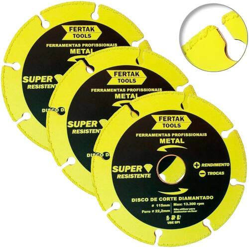 Disco De Corte Para Metal Diamantado Segmentado 115X22Mm 03 Un O Disco de Corte Para Metal Diamantado Segmentado 115x22mm é a solução ideal para cortes precisos e duráveis em metais diversos. Desenvolvido para oferecer máxima eficiência e resistência, garante resultados superiores em trabalhos profissionais e industriais.