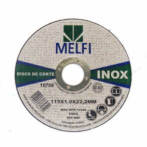 O Disco de corte para aço inox é utilizado juntamente com esmerilhadeiras nos trabalhos de corte em inoxidáveis. Marca: Melfi Características: -Velocidade: 13300 rpm / 80m/s -Diâmetro: 115mm. -Espessura: 1.0mm -Furo: 22.2mm. Conteúdo: -1 Disco de Corte Orientações Gerais: Usar capa de proteção. Use óculos. Proteja seus olhos. Não exceder rotação indicada. Aplicação: Ideal para proporcionar um excelente rendimento nas operações de corte, devido a sua espessura mais fina que os discos de cortes normais. Código: 10706