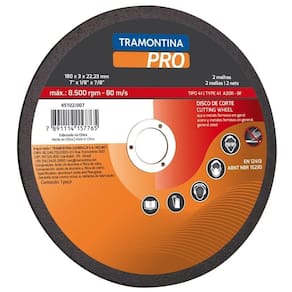 Disco De Corte Para Aços E Metais Ferrosos Em Geral 4.1/2" Tramontina Pro Tramontina Disco de Corte para Aços e Metais Ferrosos em Geral 4.1/2 Tramontina PRO Tramontina - Utilizado no corte de aços e metais ferrosos em geral, a linha de discos de corte da Tramontina PRO é produzida e testada para garantir segurança e resistência. A ferramenta certa para você que trabalha em manutenções industriais.OrientaçõesDisco produzido em óxido de alumínio. Corpo reforçado com 2 malhas de fibra de vidro. Anel interno de aço especial. Velocidade máxima de trabalho 80m/s - 13300 rpm. Modelo tipo 41 - A46T-BF. EN12413. ABNT NBR 15230. Utilizado juntamente com esmerilhadeiras nos trabalhos de corte em aços e metais ferrosos em geral. Proporciona um excelente rendimento nas operações de corte. Todas as ferramentas são produzidas e testadas conforme normas específicas.ObservaçõesUse óculos, luvas de segurança, protetor auricular, máscara de proteção contra poeira e vestimentas adequadas de acordo com a tarefa a ser executada. Sempre manuseie e armazene os discos com cuidado. Antes da utilização, faça uma avaliação visual certificando-se que não haja danos ou trincas nos discos. Certifique-se que a velocidade do equipamento não exceda a velocidade máxima marcada nos discos. Utilize flanges de tamanho igual e modelo apropriado para cada tipo de disco. Sempre utilize o protetor de segurança do equipamento. Sempre que utilizar discos novos, antes da operação trabalhe com a máxima rotação, sem carga, por um minuto em área protegida. Tal procedimento tem o objetivo de verificar a integridade dos discos. Utilize apoio para os braços, se necessário. O ambiente de trabalho deve ser ventilado para evitar doenças respiratórias. Não utilize discos que foram expostos a umidade e temperaturas extremas. Não utilize discos que sofreram quedas ou que apresentem danos. No momento da montagem, não force os discos contra o equipamento ou altere o tamanho do furo central. Não aperte as flanges excessivamente. Não fique diretamente em frente aos discos durante a operação. Não utilize os discos para outros fins a não ser para os que foram projetados. Armazene em local limpo e seco.Características GeraisEAN137891114157758DUN1417891114157755NCM6804.22.11Peso Líquido0,0700 kg.Peso Bruto0,0700 kg.Metragem0,000040 m.Dimensões Embalagem (Compr. X Larg. X Alt.)115x 115x 3 mm.Dimensões Produto (Compr. X Larg. X Alt.)115x 115x 3 mm.Dimensão Extra A3,0 mm.Dimensão Extra B115,0 mm.Dimensão Extra C22,2 mm. Características Gerais do Produto: Garantia: - 1 Ano