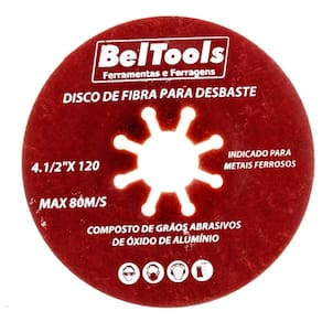 Indicação: Indicado para desbastes em metais ferrosos com esmerilhadeiras angulares. Com estrutura reforçada, é ideal para uso industrial. Diâmetro externo: 4.1/2" - 114mm. Grão: G 120. Tipo de costado: Fibra. Rotação máxima: 13.300 rpm.