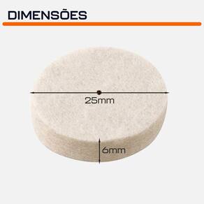 Disco de Feltro 25mm para Polimento com Micro Retíficas Dremax - Marca: Dremax - Referência: PP005 - Indicado para polimentos - Diâmetro do disco: 25mm - Espessura: 6 mm - Diâmetro do furo: 3mm - Uso em micro retíficas de qualquer marca com a haste específica - Para polir metais e plásticos em superfícies planas ou orifícios - Indicada para polimento de metais ferrosos ou não ferrosos, aço, aço inoxidável, alumínio, bronze, cobre, latão e plástico em geral - Para uso em conjunto com a haste para pontas de feltro - : 90 dias contra defeitos de fabricação A DREMAX é a primeira e única marca brasileira dedicada exclusivamente às micro retíficas, acessórios e acoplamentos para esta indispensável ferramenta. Seja para trabalhos de precisão, artesanato, modelagem ou reparos, a DREMAX tem o produto certo para você. Marca: Não Informado Ean: 7734625993661
