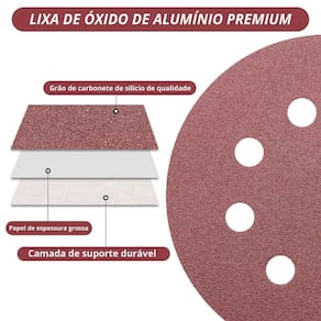 - Alto Poder Abrasivo: Remoção eficiente de material sem comprometer o acabamento. - Fixação Aderente: Troca rápida e prática para maior produtividade. - Sistema Perfurado: Melhor extração de poeira, reduzindo acúmulo e prolongando a vida útil.