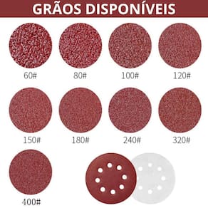 Diâmetro: 125mm Grão: 80 Material: Lixa abrasiva de alta performance. Compatibilidade: Ideal para lixadeiras roto-orbitais com sistema aderente.