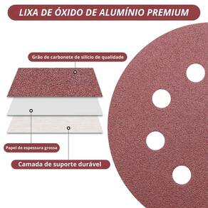 Diâmetro: 125mm Grão: 80 Material: Lixa abrasiva de alta performance. Compatibilidade: Ideal para lixadeiras roto-orbitais com sistema aderente.