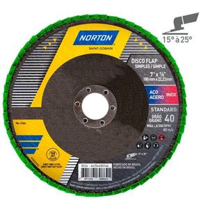 Produto: Disco de lixa flap disc côncavo 7" fibra - Standard Marca: Norton Grão: 40Descrição: O Disco de Lixa Flap Disc Côncavo 4.1/2" da Norton foi especiamente projetado para oferecer uma experiência superior em desbaste e preparação de superfícies, ideal para profissionais exigentes. Composto por aletas de lixa duráveis com costado de tecido e grão de óxido de alumínio, o Disco de Lixa Flap Disc Côncavo da Norton se destaca na categoria de entrada por sua performance notável. Se você busca resultados profissionais em manutenção e pequenos reparos, este é o produto que você precisa. Indicações do uso: Ideal para metais, aço carbono, e aço inoxidável. Especialmente desenvolvido para processos como remoção e nivelamento de superfícies, além de preparação para pintura. Alto rendimento, garantindo uma remoção eficaz do material com menos trocas de disco. Design côncavo, que proporciona um contato otimizado com a superfície de trabalho, aumentando a uniformidade e a qualidade do acabamento.Especificações: Medida: 7 " 180mm Diâmetro do furo: 22,23 mmCostado em fibraFormato: cônico. Ean: 7891345813102