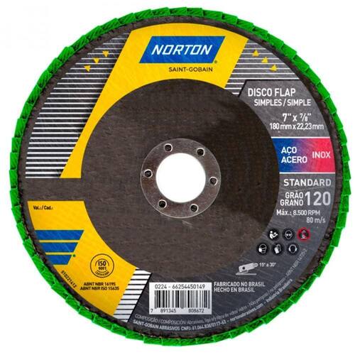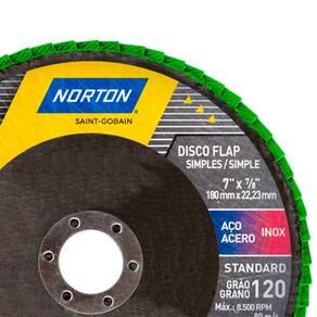 Produto: Disco de lixa flap disc côncavo 7" fibra - Standard Marca: Norton Grão: 120Descrição: O Disco de Lixa Flap Disc Côncavo 4.1/2" da Norton foi especiamente projetado para oferecer uma experiência superior em desbaste e preparação de superfícies, ideal para profissionais exigentes. Composto por aletas de lixa duráveis com costado de tecido e grão de óxido de alumínio, o Disco de Lixa Flap Disc Côncavo da Norton se destaca na categoria de entrada por sua performance notável. Se você busca resultados profissionais em manutenção e pequenos reparos, este é o produto que você precisa. Indicações do uso: Ideal para metais, aço carbono, e aço inoxidável. Especialmente desenvolvido para processos como remoção e nivelamento de superfícies, além de preparação para pintura. Alto rendimento, garantindo uma remoção eficaz do material com menos trocas de disco. Design côncavo, que proporciona um contato otimizado com a superfície de trabalho, aumentando a uniformidade e a qualidade do acabamento.Especificações: Medida: 7 " 180mm Diâmetro do furo: 22,23 mmCostado em fibraFormato: cônico. Ean: 7891345813133