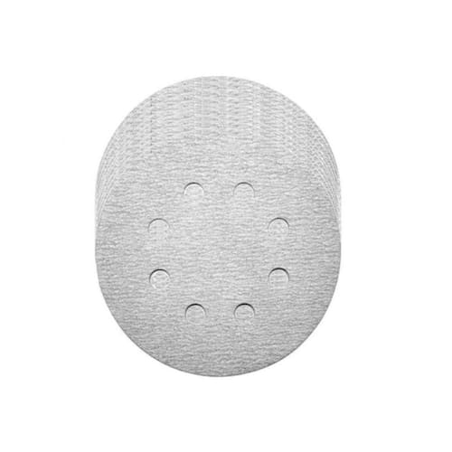 O disco de lixa é ideal para se usar com discos de borracha, furadeira e esmerilhadeira. Produzido em lixa abrasiva com pluma indicado para lixar ferro e madeira. Características técnicas: material: resina, óxido de alumínio, papel e pluma medidas: 150mm quantidade de furos: 8 limite máxima: 8. 500rpm - 80m/s grão: 180 marca: starfer ref. : 4003667