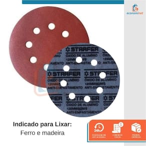 O disco de lixa é ideal para se usar com discos de borracha, furadeira e esmerilhadeira. Produzido em lixa abrasiva com pluma indicado para lixar ferro e madeira. Características técnicas: material: resina, óxido de alumínio, papel e pluma medidas: 125mm 6 quantidade de furos: 8 limite máxima: 12. 220rpm grão: 180 marca: starfer ref. : 4003365